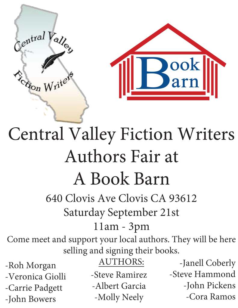 If you live in Central California, make plans to join us this Saturday, September 21, at the Clovis Book Barn for an Author’s Fair. Eleven Valley authors will sell and sign their books from 11 am to 3 pm. Hope to see you there!