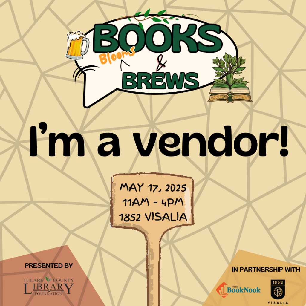 The annual Books ‘n Brews event in Visalia, CA is happening this Saturday. More than FIFTY local authors (myself included) will be there signing their books. This is a chance to meet them, visit with them, and buy their books. Doors open at 11 and close at 4pm.